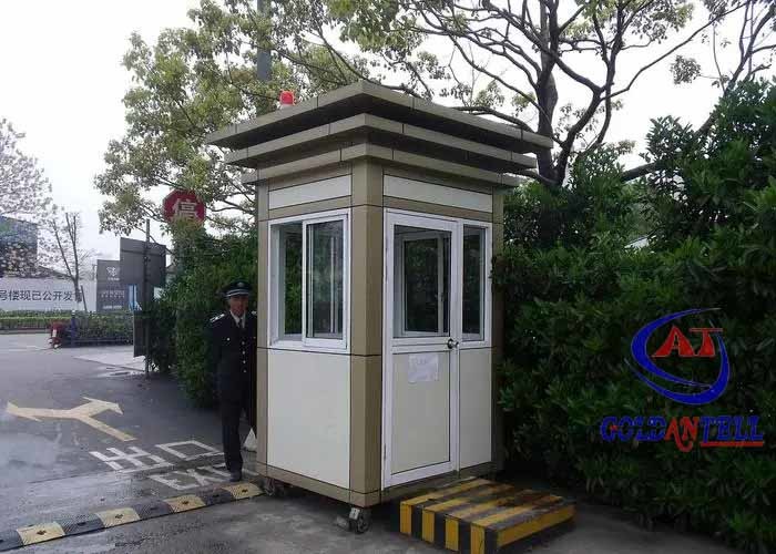 Lange levensduur Hoogwaardige draagbare buitenbeveiligingscabines Eenpersoonskiosk Hooggeleid licht Prefab cabine met wielen