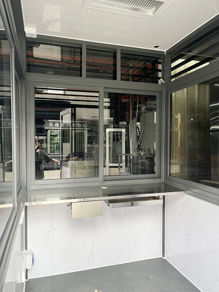 Goldantell Security Guard Booths is duurzaam levensduur van maximaal 20 jaar, en kan worden aangepast met verschillende specificaties en vormen stand producten volgens de eisen van de klant.Het wordt meestal gebruikt bij de ingang van het woongebouw, politiebureau, bouw van gebouwen, park, verkeerscentrum, bestaan van tuin gebied, kantoor, bedrijf, fabriek en ga zo maar door
